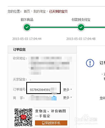 支付完成后,来到订单的地方,找到我们这次购买的订单号,复制下来