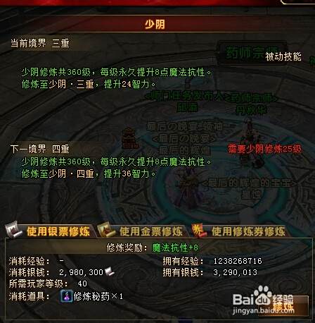 如下图 少阴 每级增加8点魔法抗性,境界提升增加智力(魔攻+魔防)