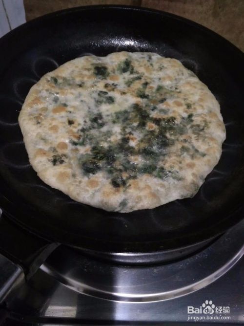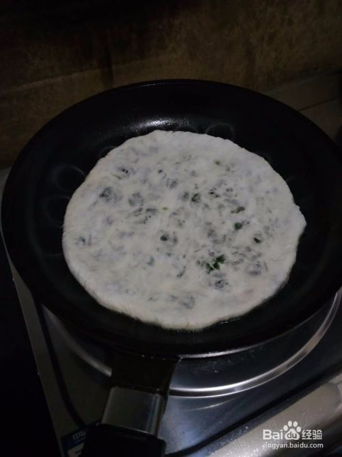 饼的表面慢慢煎至微黄,再换一面继续小火慢煎