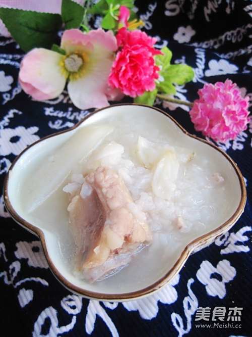 排骨煲粥就是比瘦肉的会更鲜美一点哦,不知道是不是肉质的关系,加入了一下淮山让粥味道好又营养呢,百合也是对宝宝不错的东西,滋阴润燥,煲粥甘甜,所以煲的这锅粥很鲜美呢。