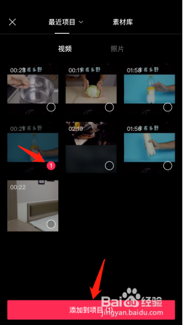 在素材库找到你要剪辑的视频,选中并添加到项目中;