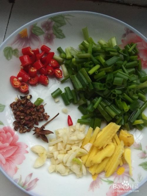 然后把葱,姜,蒜头,小米椒,都切好,八角,花椒都准备用。