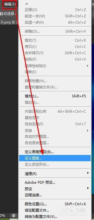 点击【编辑】,选择【定义图案】选项,在弹出的对话框里名称为【蒲公英】,之后点击【确定】。