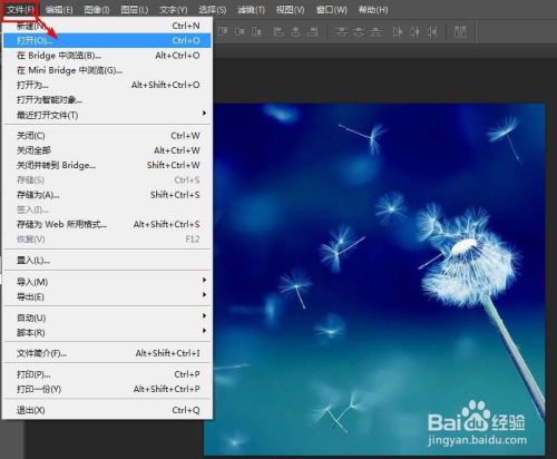 打开ps软件,点击【文件】,选择【打开】,选择一张需要添加纹理图案的图片。