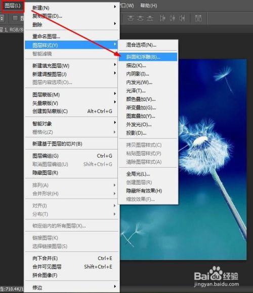 点击【图层】,选择【图层样式】里的【斜面和浮雕】选项。