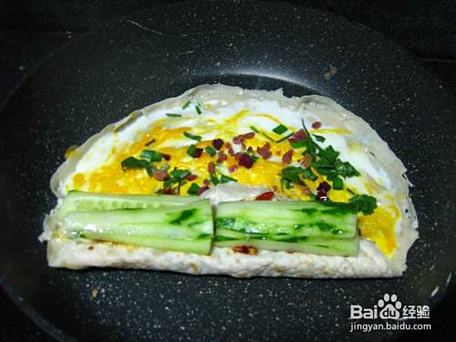 记得上学那会儿特爱吃山东煎饼,饼的上面加了咸菜和葱花感觉味道好美。过年期间好不容易遇到一家卖煎饼的,果断的就给买了一个,和老公分着吃。原来它都是我们的“菜”。 也或许这种口味比较适合我们四川这边人们。一直想着在家里也做一下,黄瓜鸡蛋完美组合,不给早餐添加无尽的动力么?