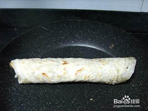 将饼卷上一部分,在上面涂抹上辣椒酱