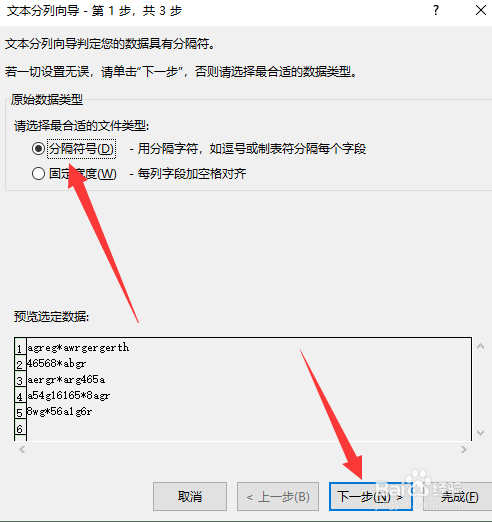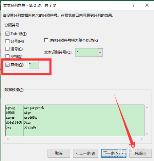 分隔符号中选“其他”,并输入表格中内容的实际符号,点击完成。