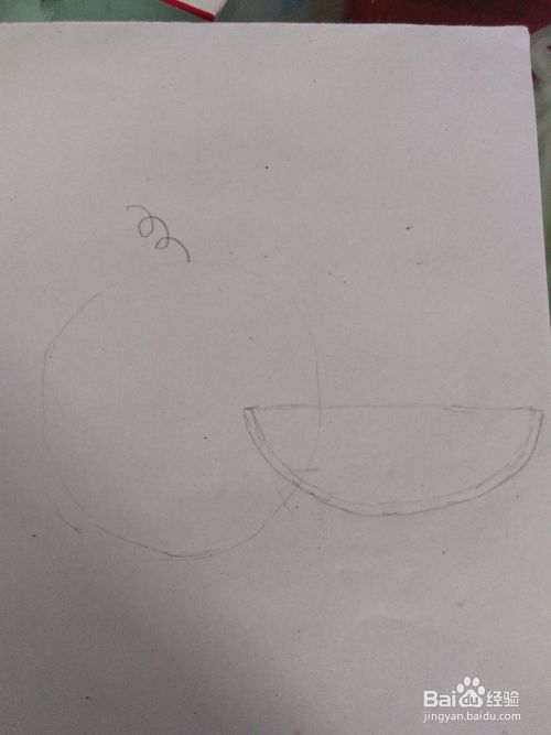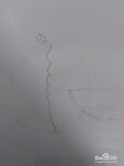在大圆圈的上边画一个波浪线,作为西瓜秧子
