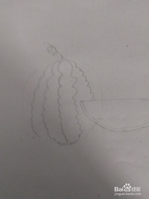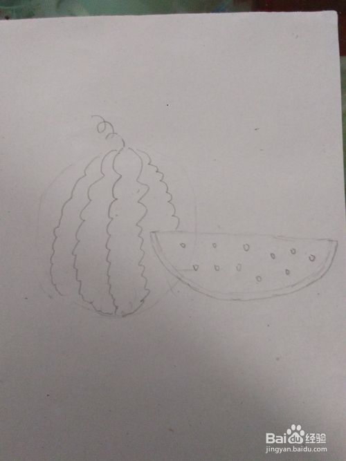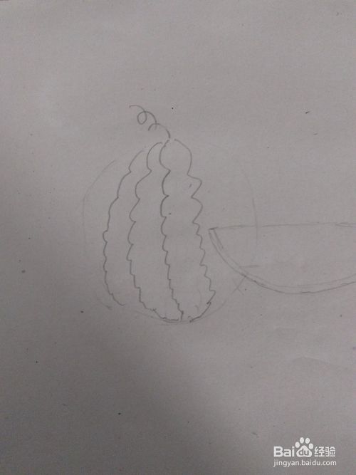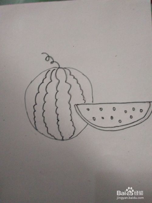 在西瓜的中间向下画一条线,以波浪线的画法画。