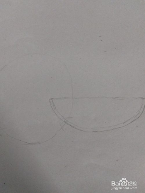 在半圆的下方再画一半弧,两条线之间的距离要留小一点。