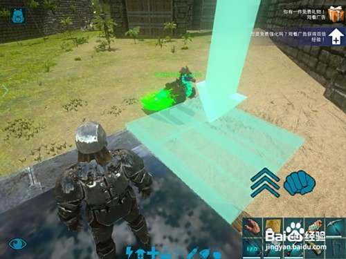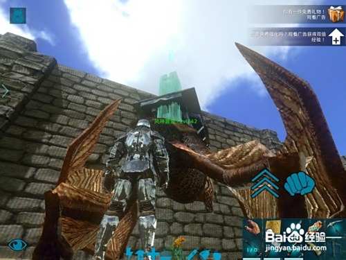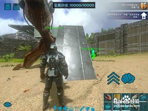 在完成第一步和第二步后,我们就可以安放地基了,建议大家放第一个地基时先跳下风神翼龙,在地面上进行安放,否则很容易放到平台鞍上面。安放完第一个地基后,就可以继续上风神翼龙的背上搭建第二个地基。