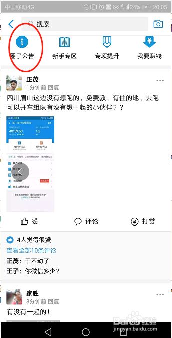 七、还可以点击 圈子,圈子就跟微信朋友圈一样,看看他们的酬金,遇到的烦恼等消遣一下