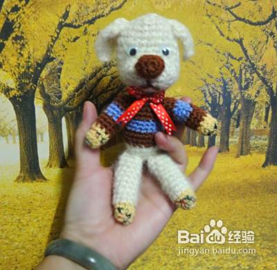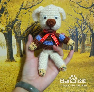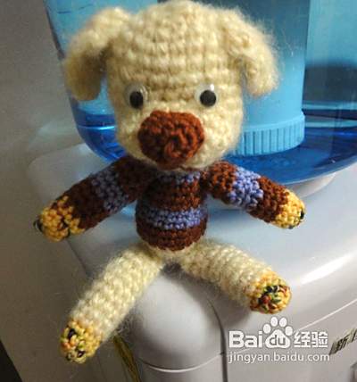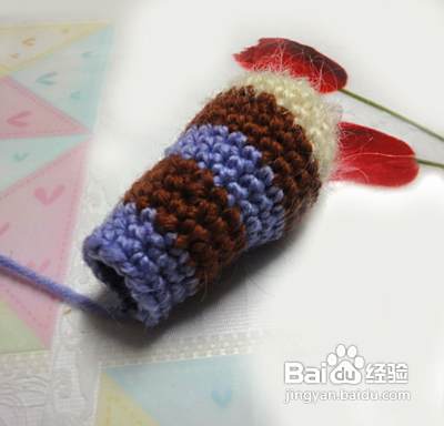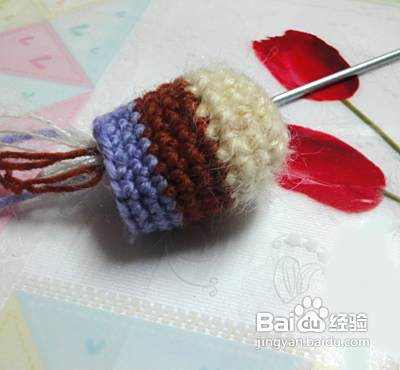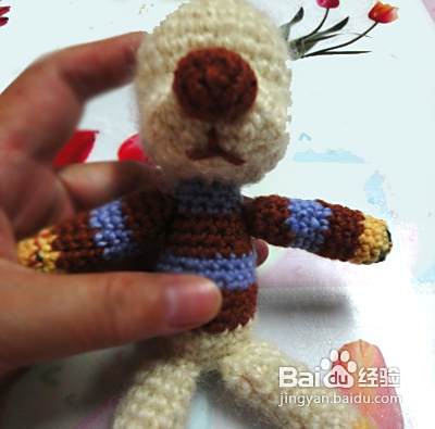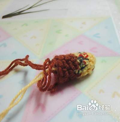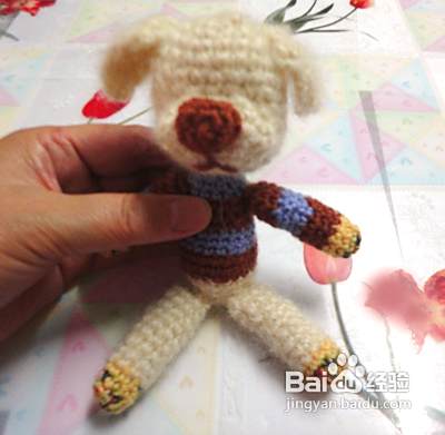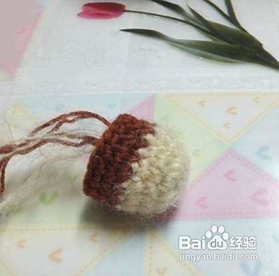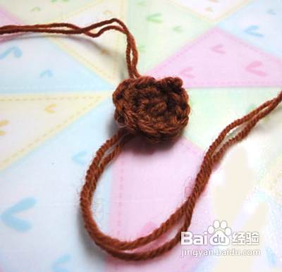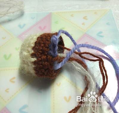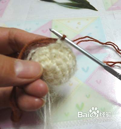 下面我们钩织狗狗的身体 起头的方法和狗狗的头是一样的,但起头是8针。第二行、第三行、第四行不加针。第五行加4针并且换成咖啡色毛线 第六行至第九行不加针(从第五行开始更换毛线颜色,看图哦)