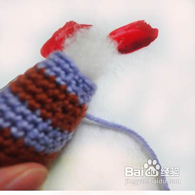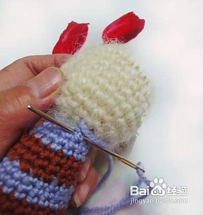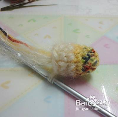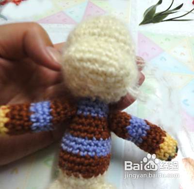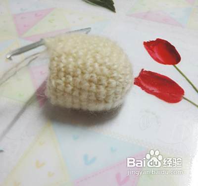 我们再钩织上肢同上起头8针。第二行、第三行、第四行不加减针。第五行加2针并且换线第六行、第七行不加减