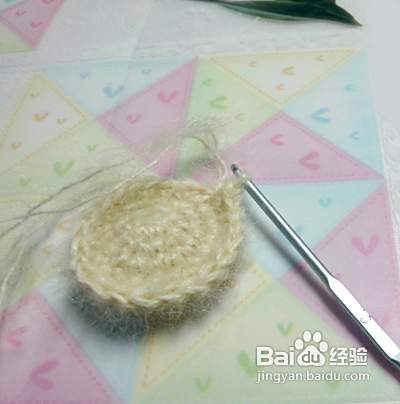 现在我们钩织狗狗的脸蛋 起头仍是6个辫子 脸蛋的编法是要沿着6个辫子的上下左右加针(不是圈圈哦)第二行沿着6针辫子钩织14针。第三行加4针 第四行不加针 要钩织2件 完成