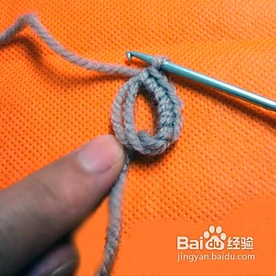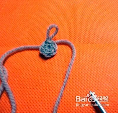 我们先从狗狗的头开始吧,因为毛线是白色图片可能有点不太清楚,我把钩小猫的起头方法放在这会更清楚些。毛线在食指上绕两圈,然后钩织6针,接下来把毛线的一头轻轻拉紧,形成一个圈圈
