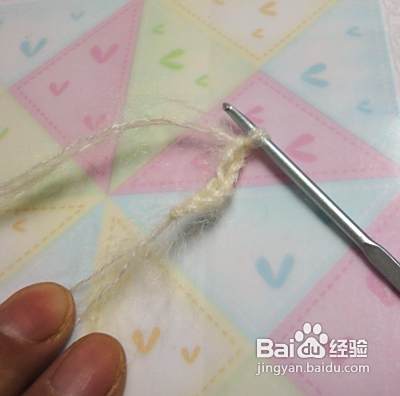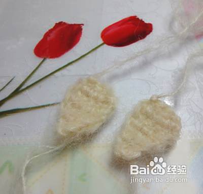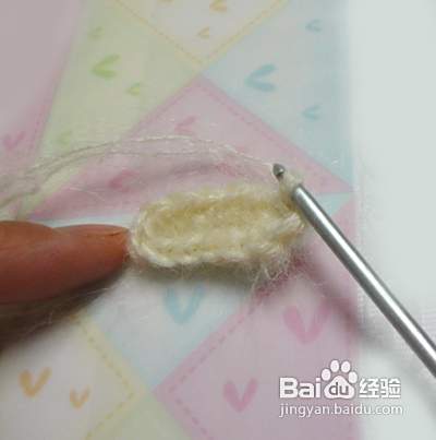 我们再来钩织狗狗的耳朵 耳朵不需要钩织圈圈是直接钩织2个辫子,第二行加2针,第三行加2针,第四行加2针,第五行减2针 第六行减2针