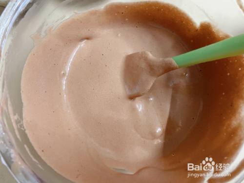 蛋黄加玉米油加牛奶搅拌混合均匀。筛入低筋面粉,可可粉搅拌均匀。蛋白加柠檬汁分三次加入细砂糖,打发至提起打蛋头有小弯短钩状态。