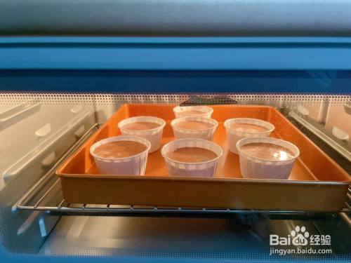 可可蛋黄糊和蛋白霜分两次翻拌均匀。倒入纸杯蛋糕中(精致的我用裱花袋挤入),8分~9分满。