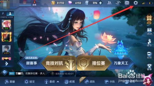 打开手机中的王者荣耀游戏,点击游戏界面右上角的设置图标,进入游戏的设置界面。
