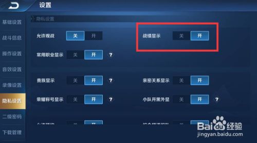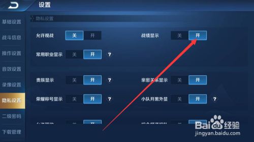 如果我们又想让别人能够查看我们的战绩时,只需回到隐私设置,将战绩显示更改为开即可。