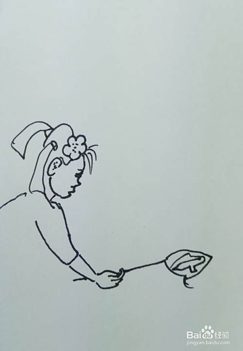 再用线条和曲线画出她的胳膊和她手里拿着的捞鱼网。