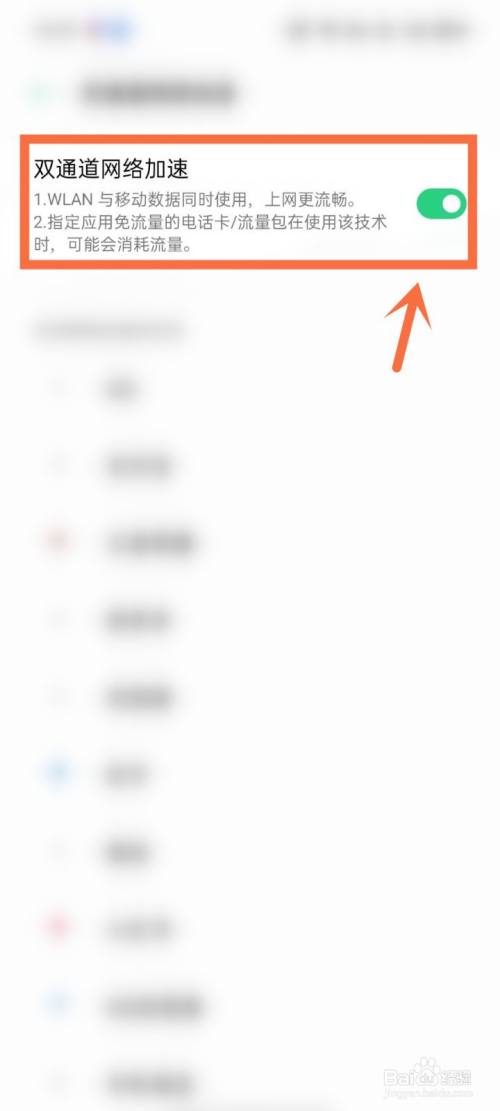 最后,我们点击双通道网络加速后方的【关闭】,即可关闭wifi和移动数据同时使用。