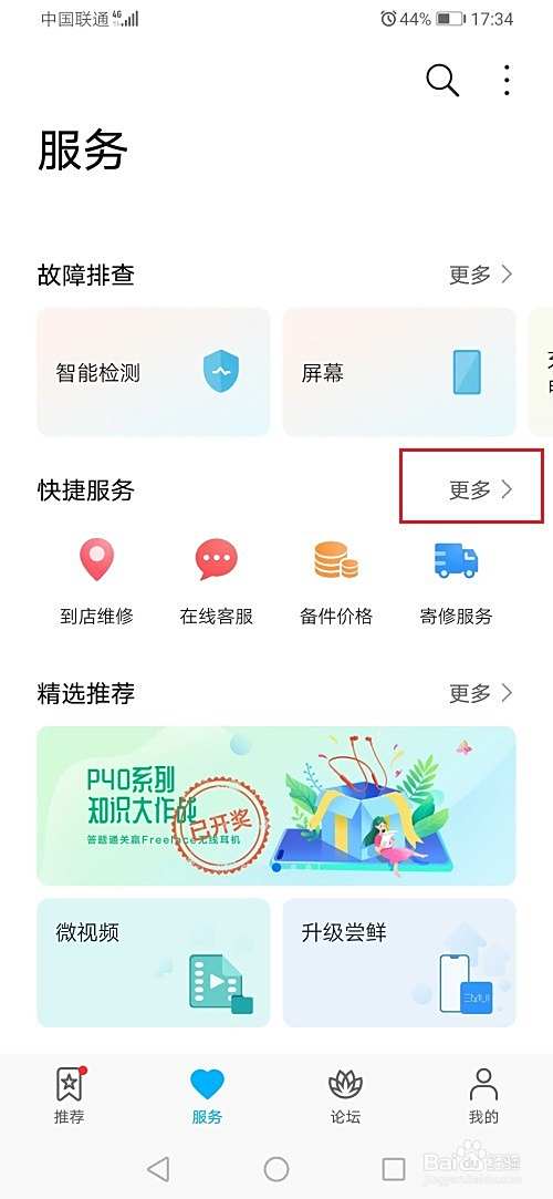 第二步进去华为荣耀手机服务之后,点击更多