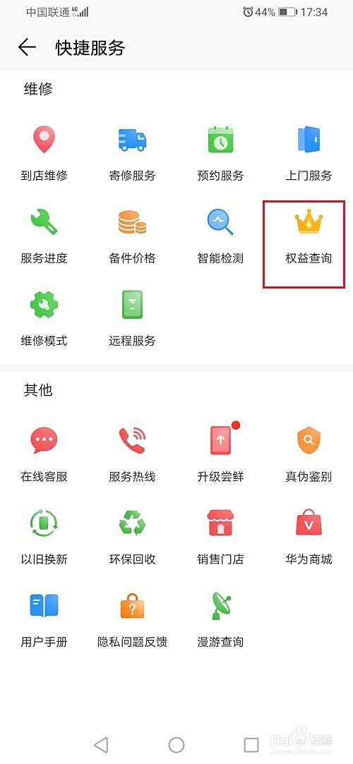 第三步进去之后,点击权益查询