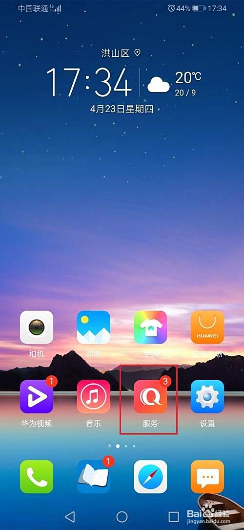 第一步打开华为荣耀手机,点击桌面的服务