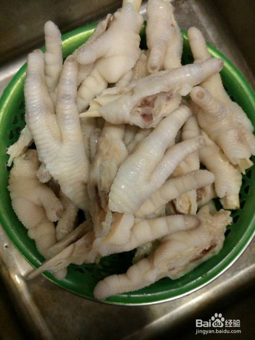 5沥干水分,将鸡爪一分为二,为了更好入味;