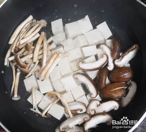 锅中放入清水,水沸后放入豆腐煮两分钟。
