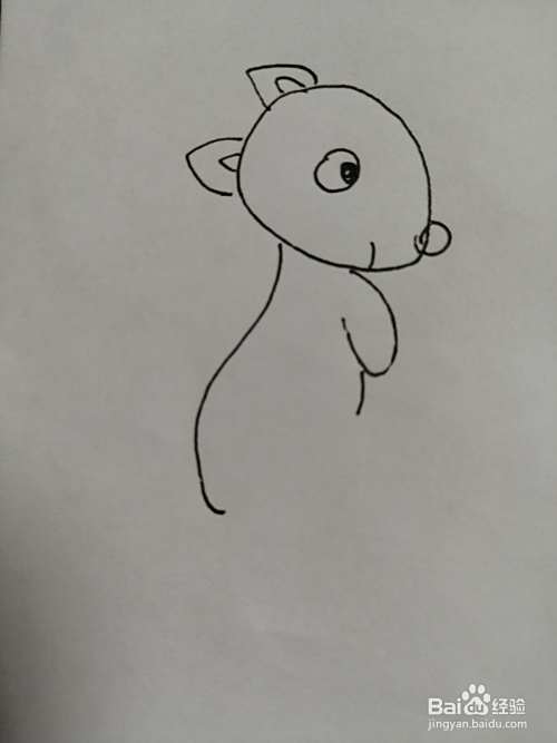 第五步,在小松鼠的头部下面画出身体,注意小松鼠小手细节的画法。