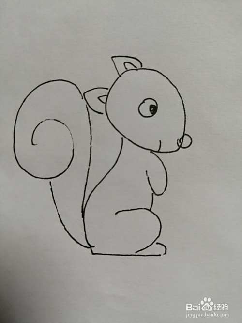 第七步,最后把可爱的小松鼠的尾巴画出来,注意尾巴细节的画法。可爱的小松鼠就画好了。