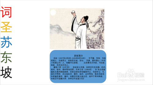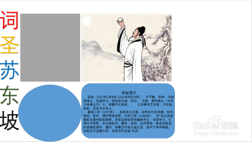 在灰色图框里面写上有关苏轼的称呼以及一些代表作,在椭圆形图框里面写上苏轼的代表作之一——题西林壁。