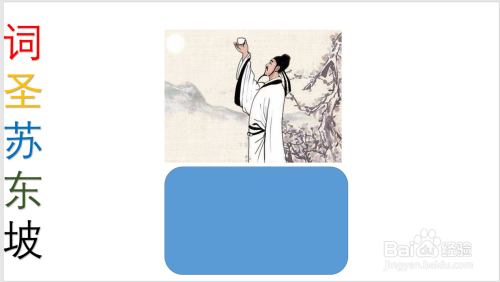 在苏东坡画像的下面画一个蓝色的图框, 并涂满颜色。