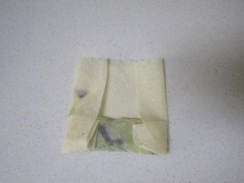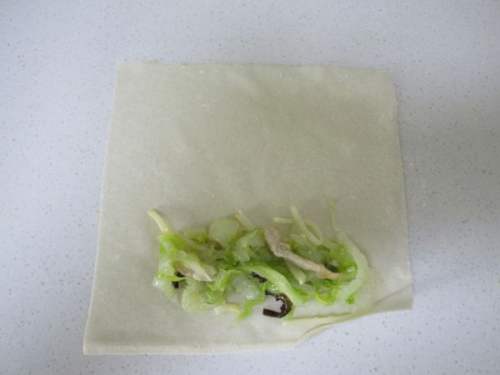 取一张春卷皮加入馅心