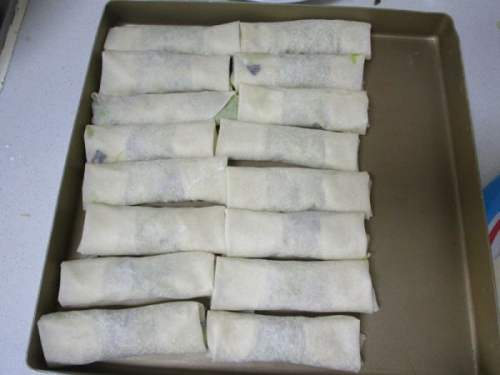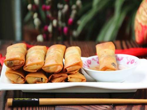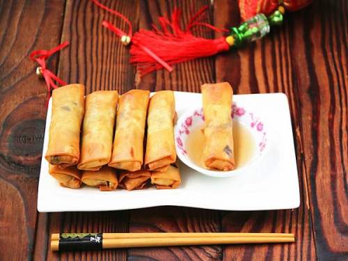 15等油温升高后再把春卷回锅炸至两面金黄后捞起控油即可享用
