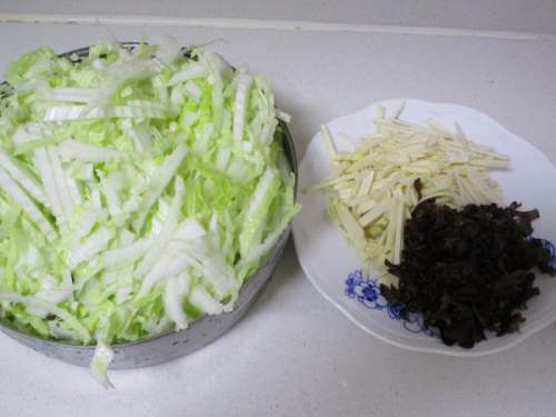 准备白菜丝,冬笋丝和黑木耳丝