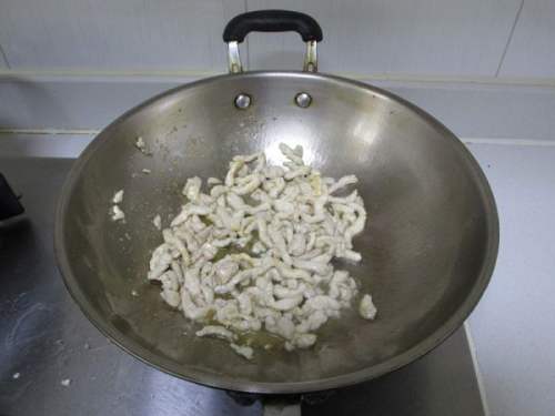 7温油倒入猪肉丝翻炒至变色后捞起