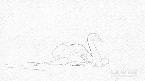 把铅笔削尖,深入刻画天鹅的脖子和嘴巴,由于脖子是羽毛,所以用细细的排线表现;亮部直接留白即可。