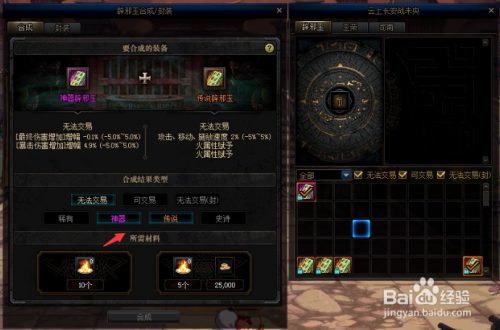 通过合成,我们可以再次随机获得辟邪玉品级、属性词条。