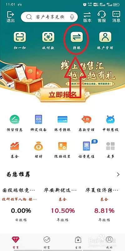 打开中国银行手机软件,找到“转账”图标点击进入。