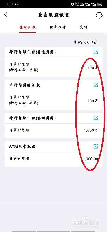 在转账汇款下方即为转账限额相关信息。