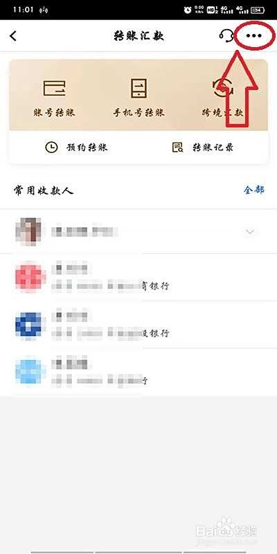 在转账页面右上角找如图位置到“...”更多图标点击进入。