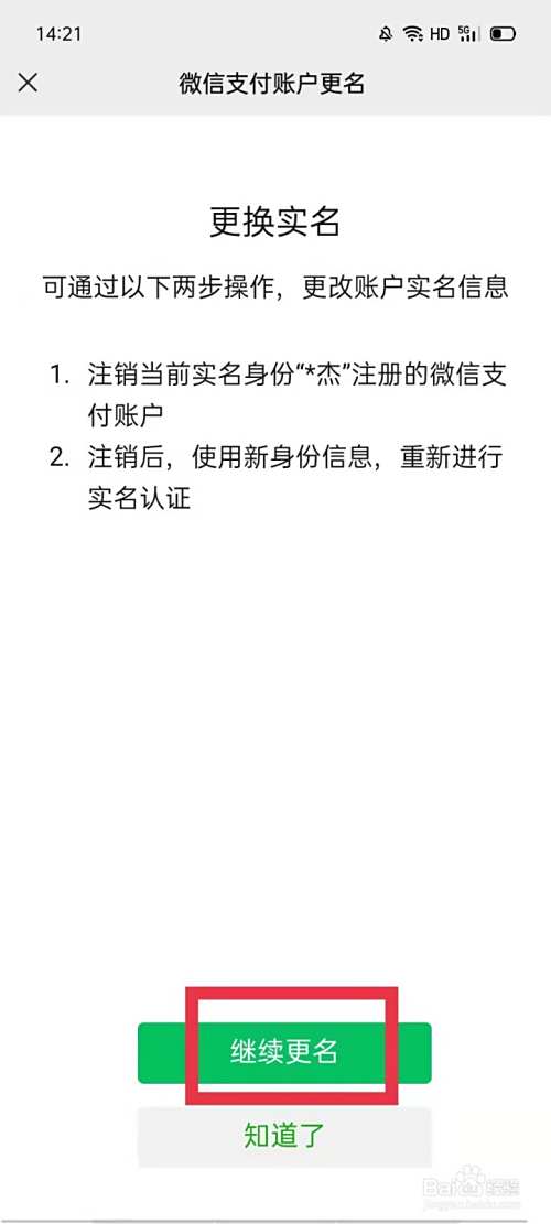 点击更换实名,点击继续更名,根据提示输入密码更换实名认证即可。