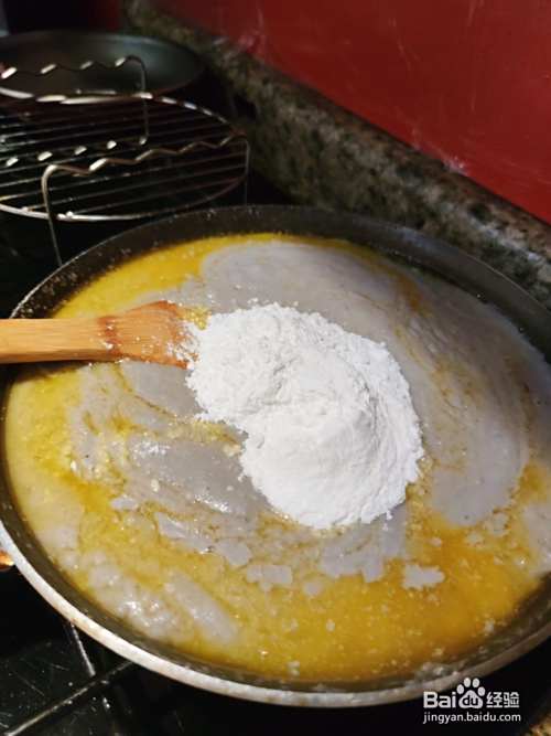 把适量粘米粉和糯米粉放到锅里,搅拌均匀后加入白糖拌匀