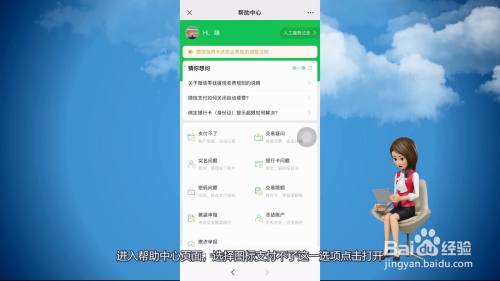 进入帮助中心页面,选择图标支付不了这一选项点击打开。