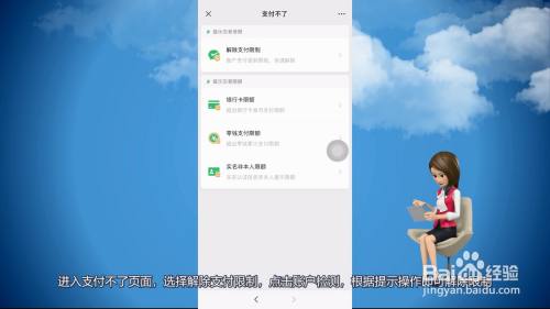进入支付不了页面,选择解除支付限制,点击账户检测,根据提示操作即可解除限制。
